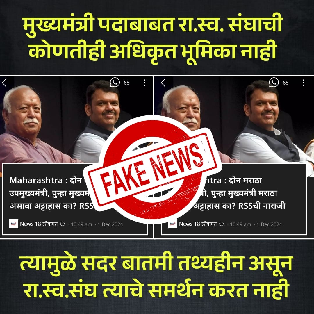 Fact Check: मुख्यमंत्री पदाबाबत रा. स्व. संघाची नाराजी असलेली बातमी तथ्यहीन; संघाने अशी कोणतीही भूमिका घेतलेली नाही.