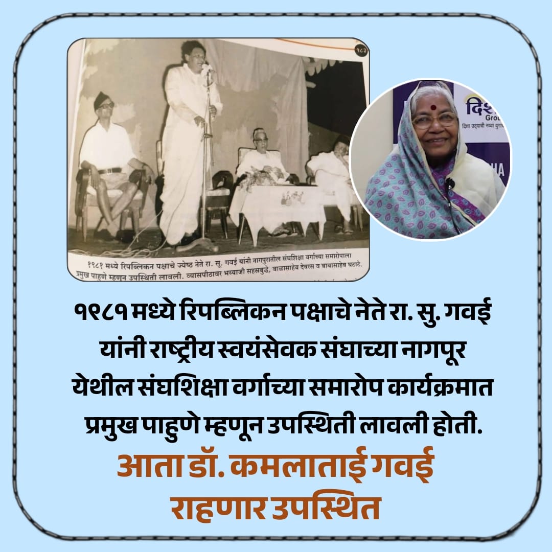 आदरणीय कमलताई गवई यांच्या संघाच्या उत्सवाला जाण्याच्या निर्णयाचे मी स्वागत करतो कारण एखाद्या नव बौद्ध व्यक्तीने राष्ट्रीय स्वयंसेवक संघाचे नुसते नाव जरी घेतले तरी त्याला खूप काही ऐकावे लागते अशी विषारी वैचारिक पेरणी समाजद्रोही यंत्रणांनी करून ठेवलेली आहे.